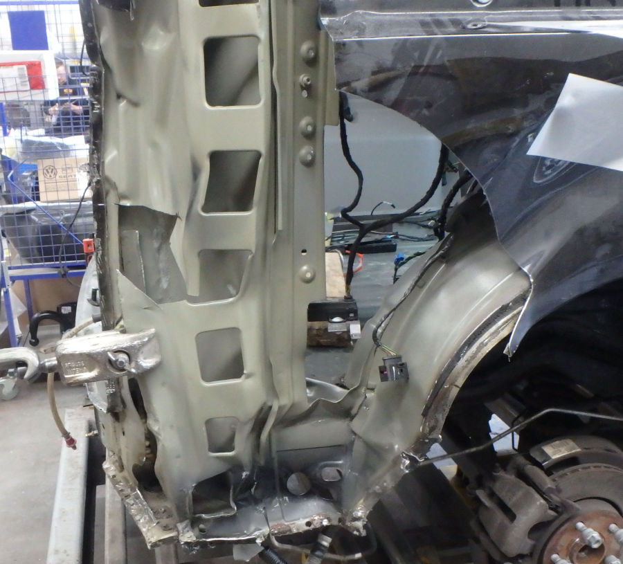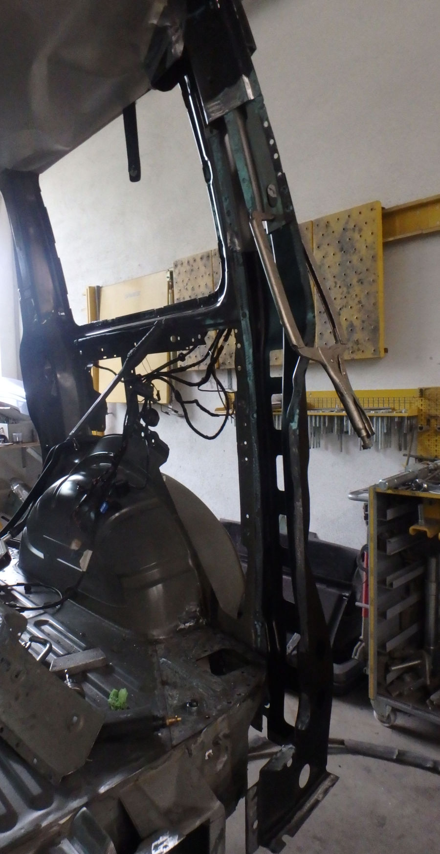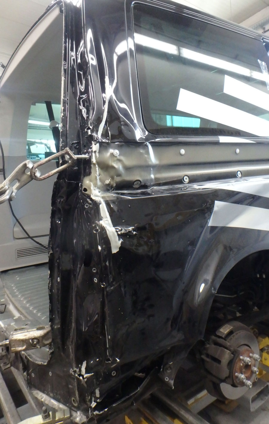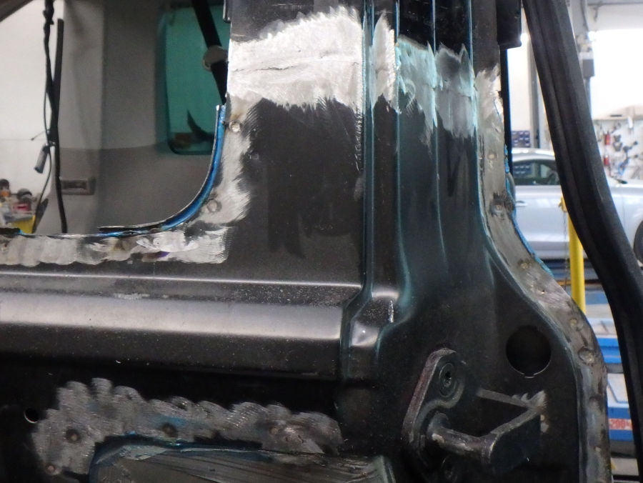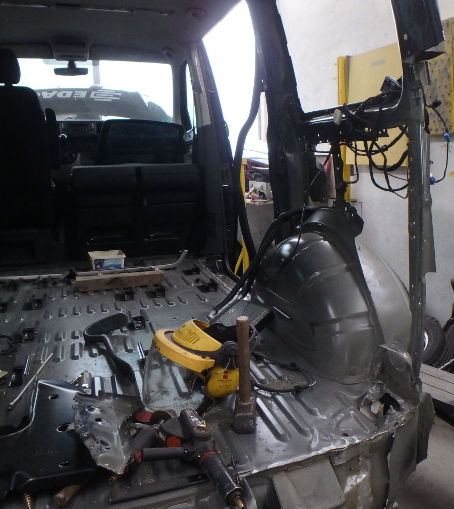 Im nächsten Schritt wird das komplette Außenblech entfernt, die D-Säule muss teilweise ersetzt werden: