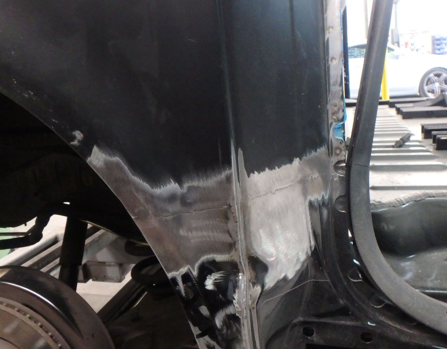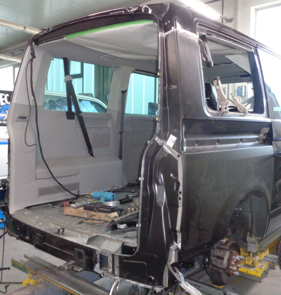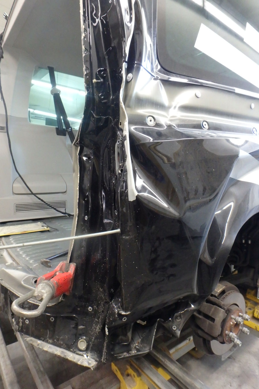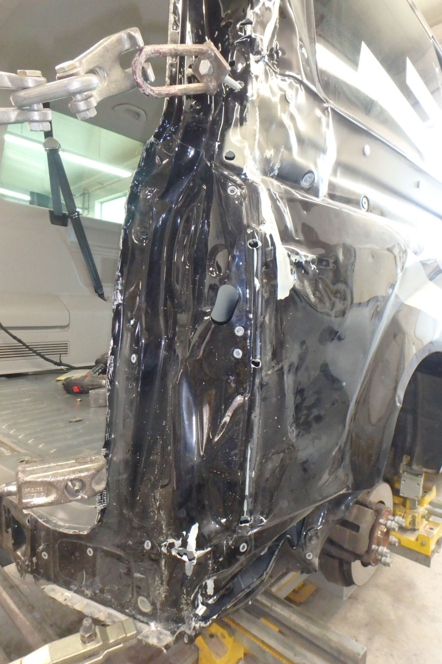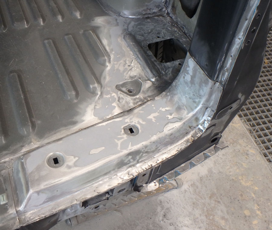 Im nächsten Schritt wird das komplette Außenblech entfernt, die D-Säule muss teilweise ersetzt werden: