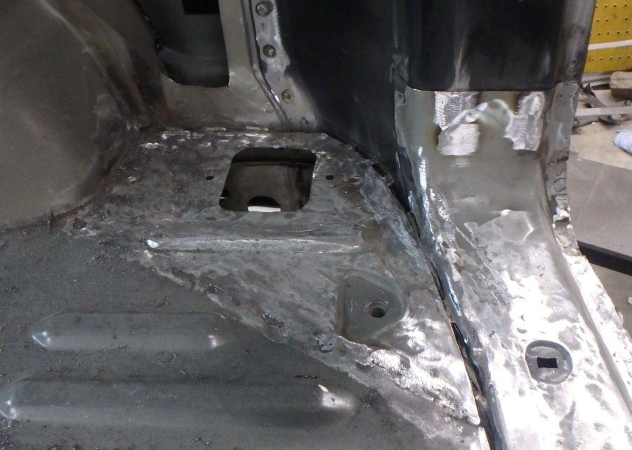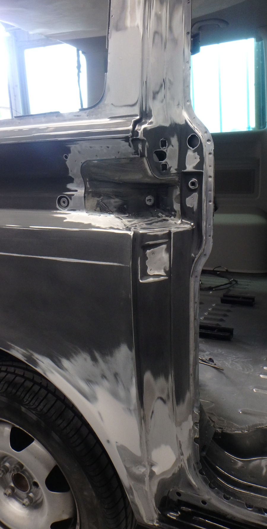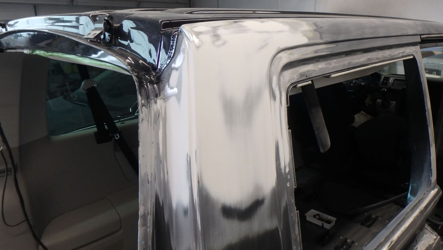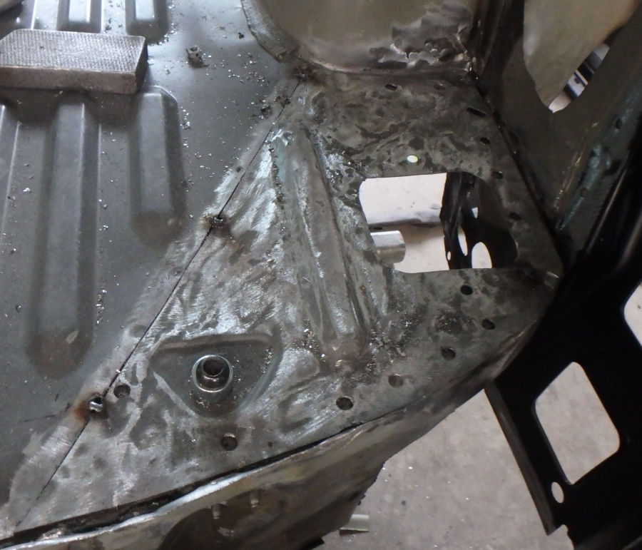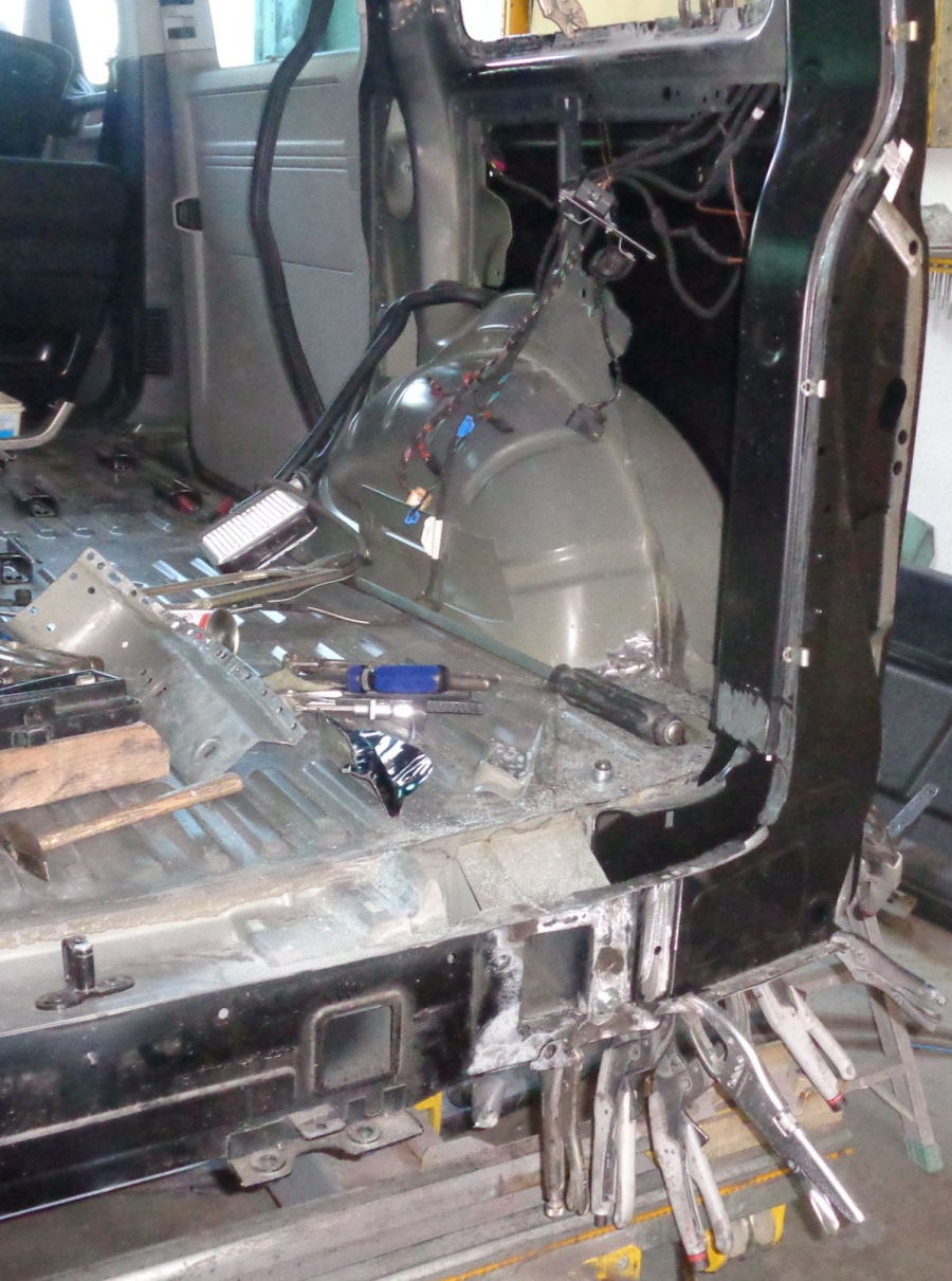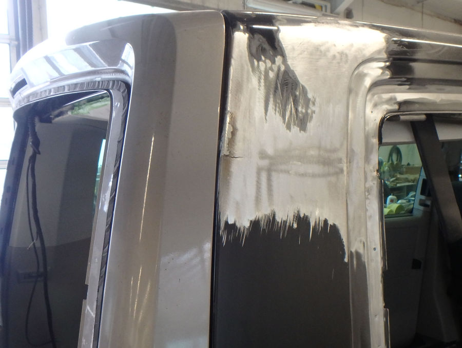 Im nächsten Schritt wird das komplette Außenblech entfernt, die D-Säule muss teilweise ersetzt werden: