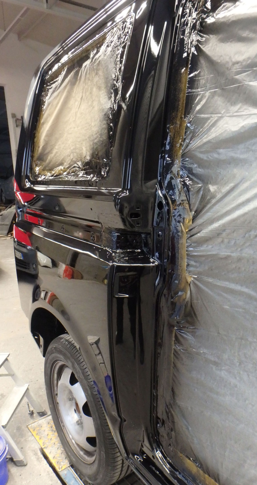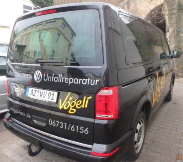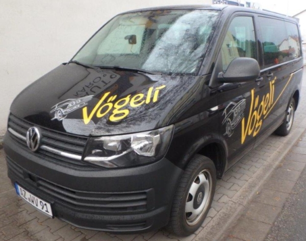 Da der T6 als Arbeitstier in die Firmenflotte aufgenommen wird, wird er natürlich auch Werbeträger und Aushängeschild für uns - der Chef muss also noch Folien kleben.