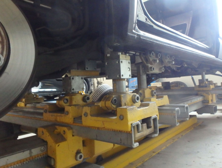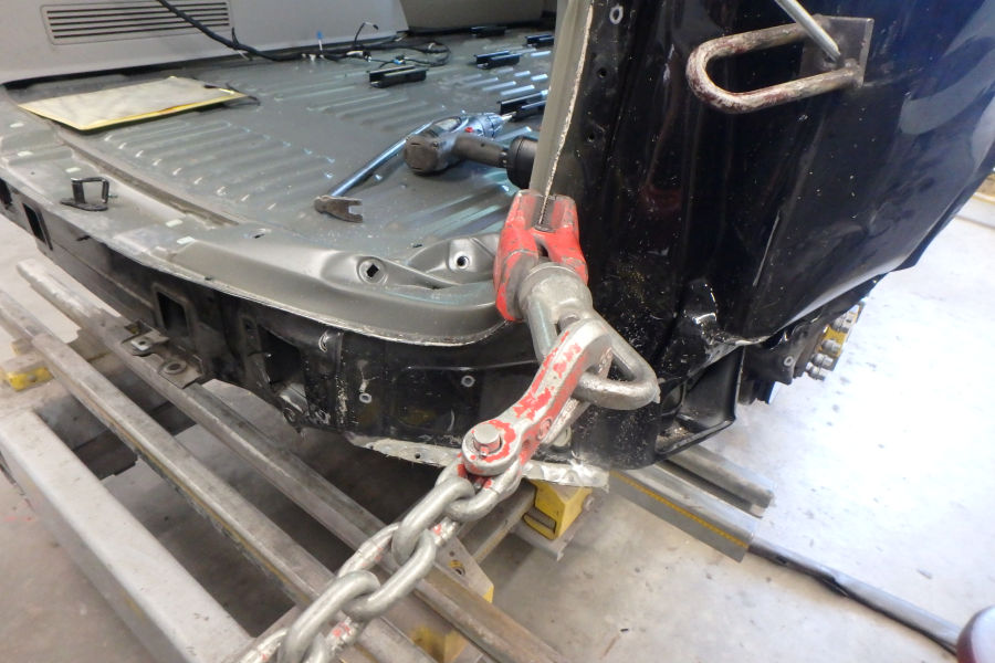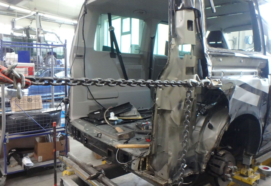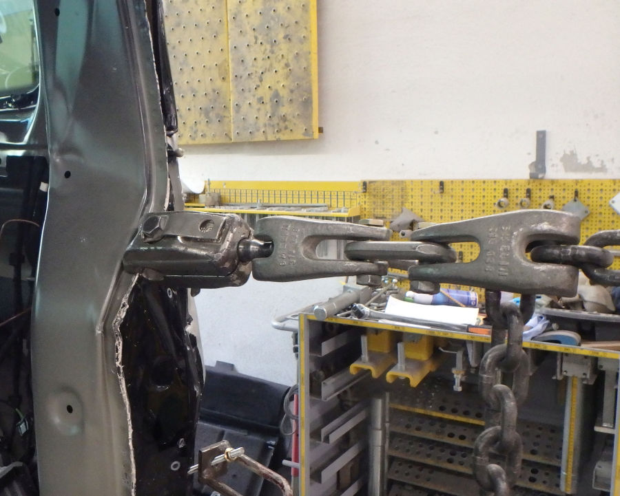 Fixieren des Fahrzeugs, anbringen der Züge an verschiedenen Punkten: