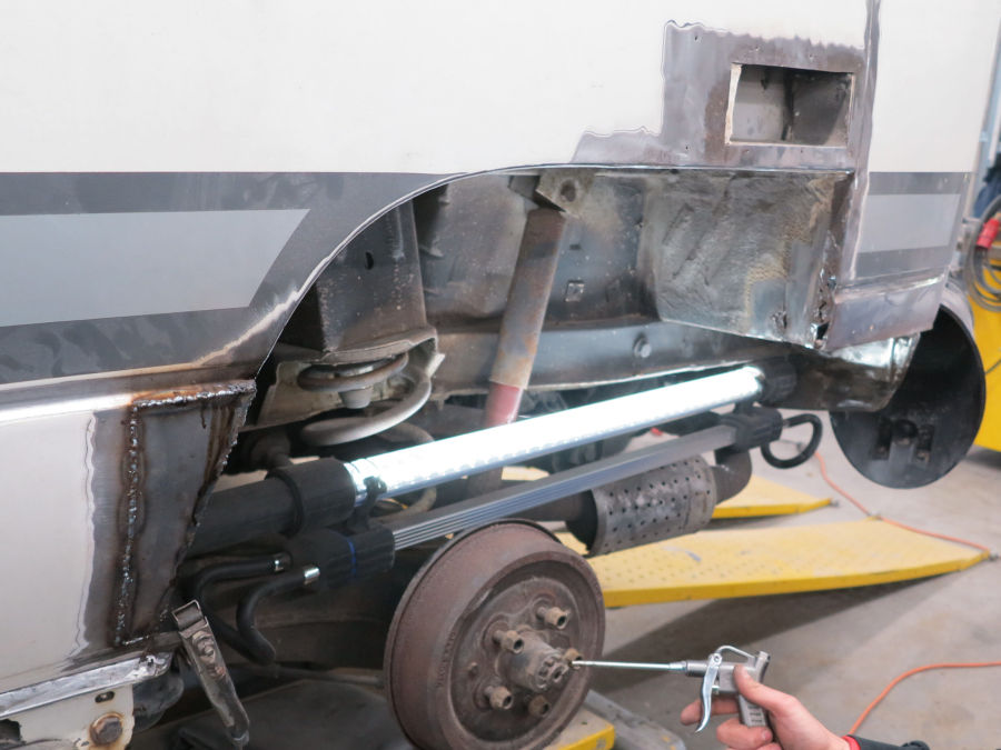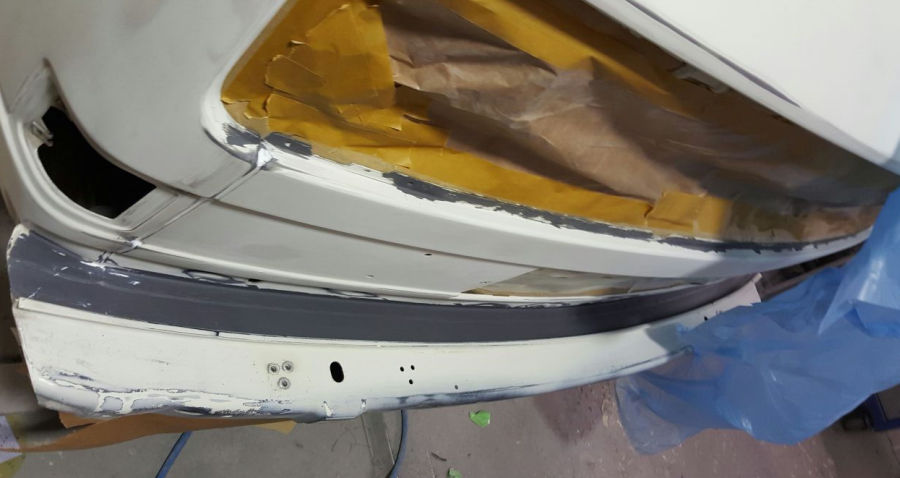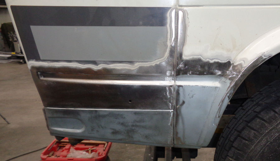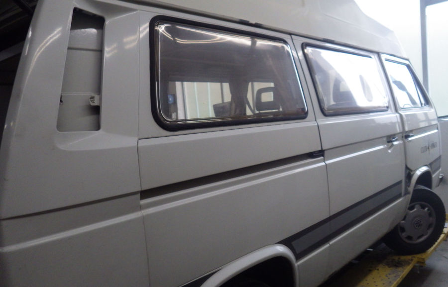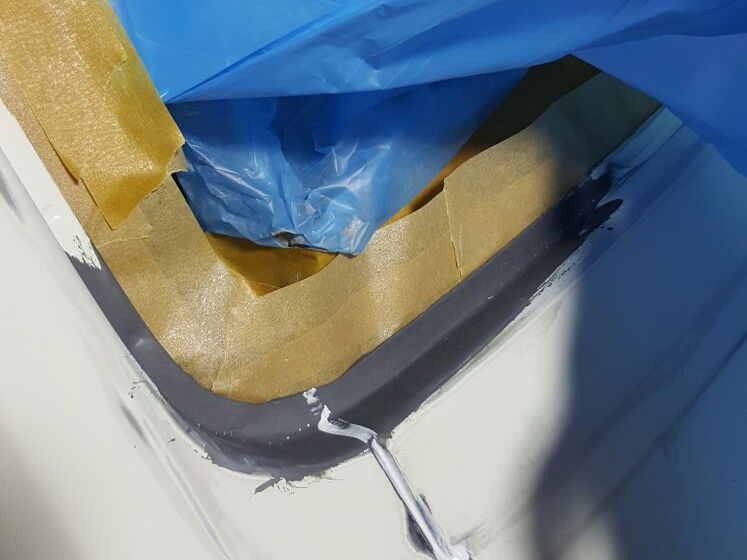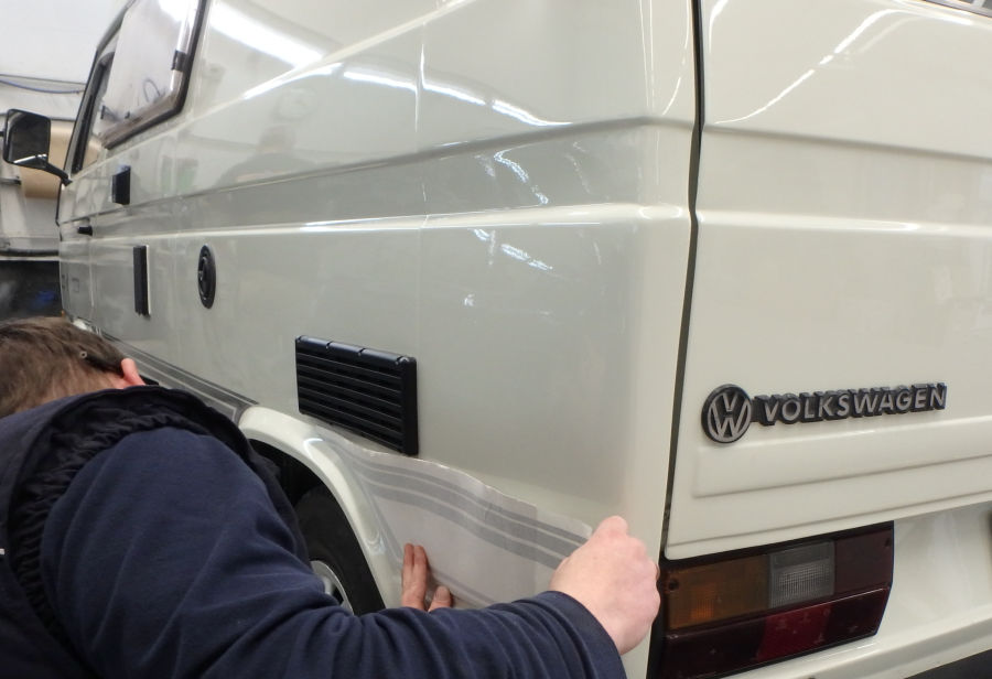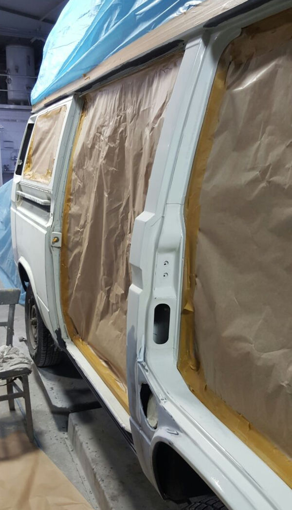 Spachteln, schleifen, Fugen elastisch abdichten und Fahrzeug abkleben.