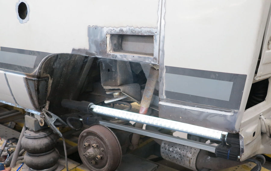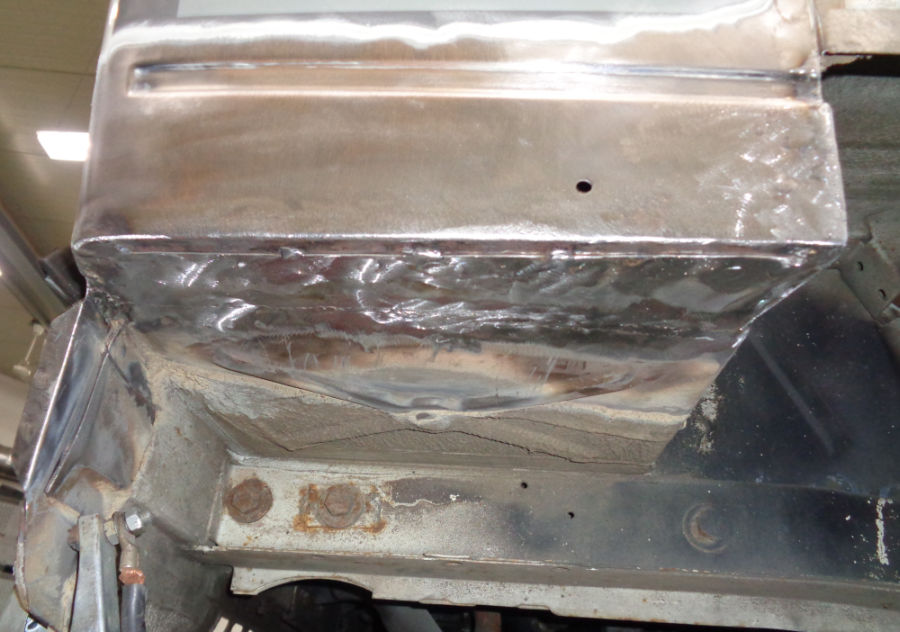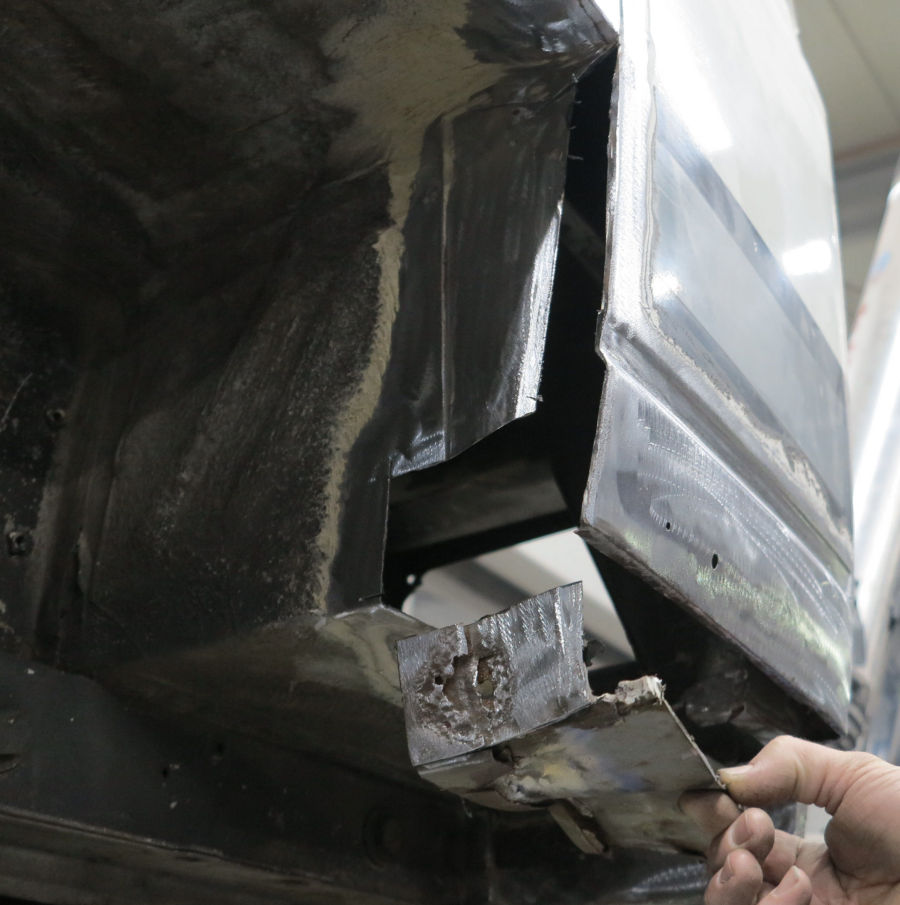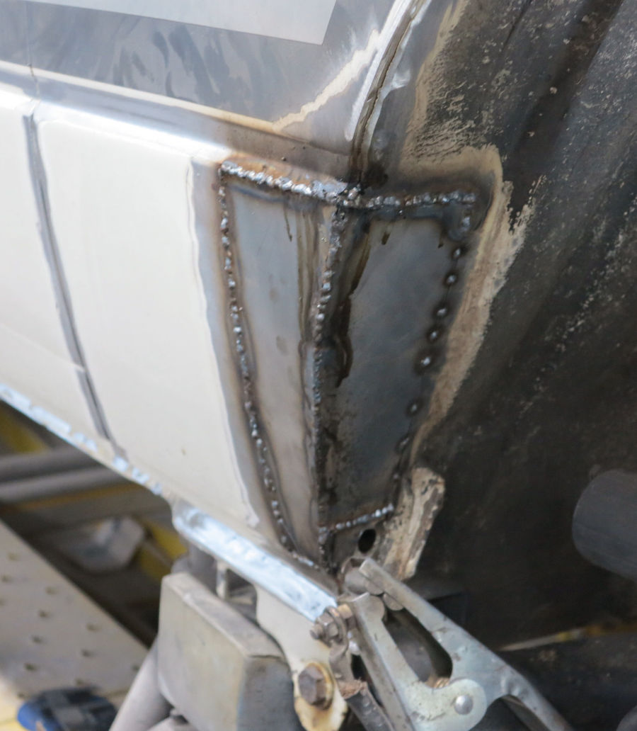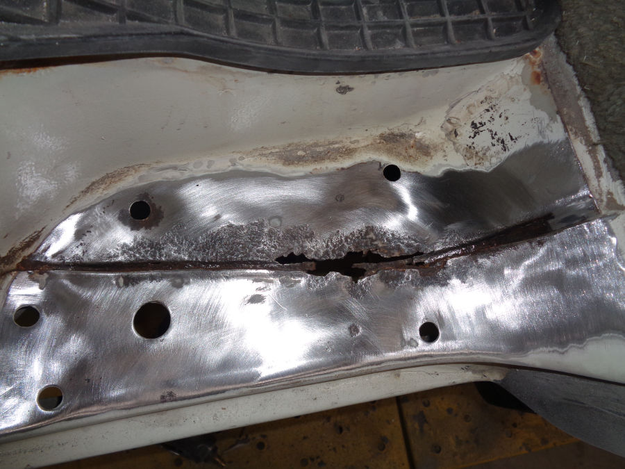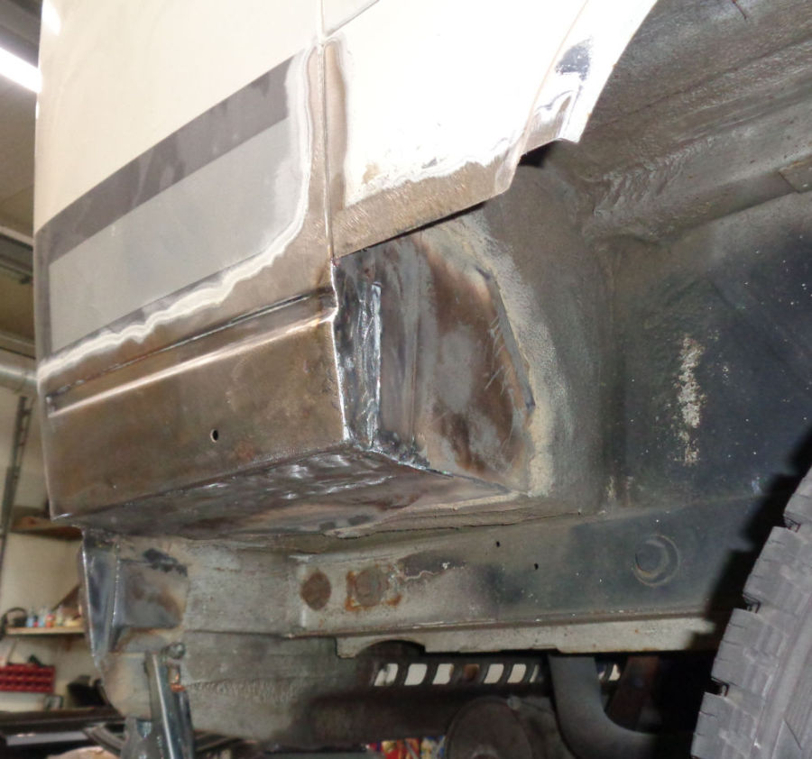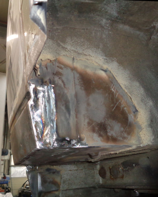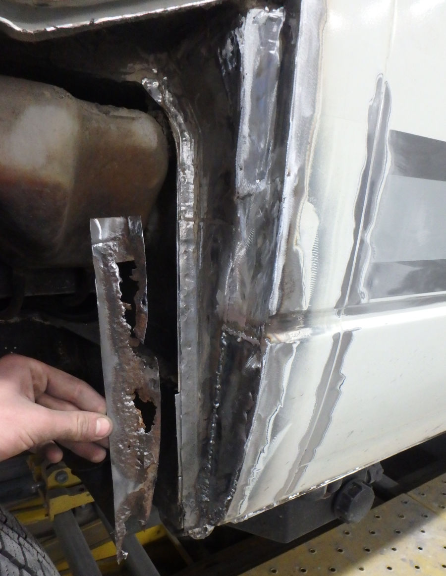 Wir haben den durchrosteten Teil rausgetrennt und neue Bleche angepasst und eingeschweißt:
