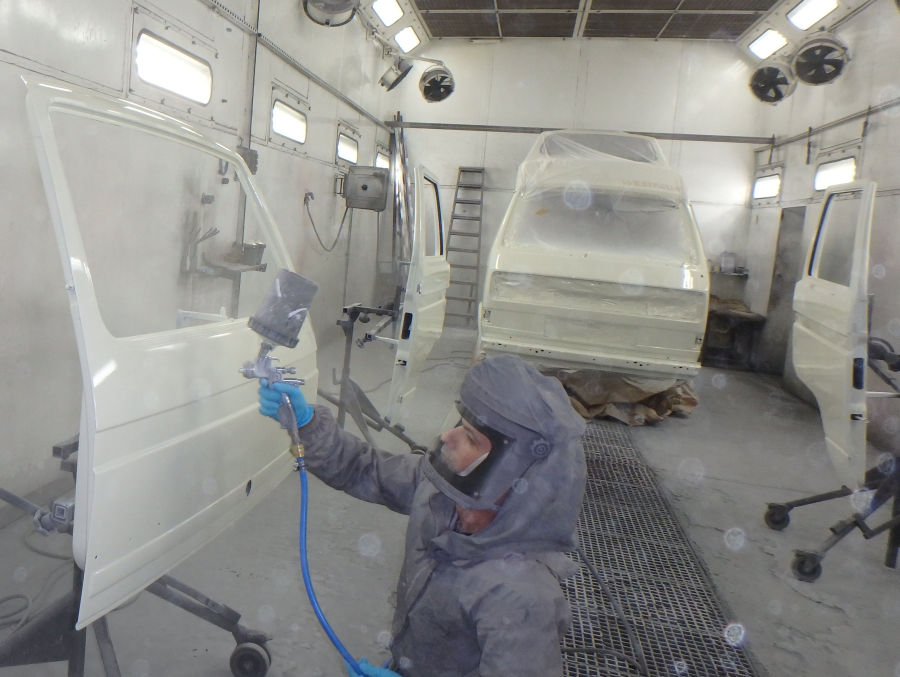 In der Lackierkabine: