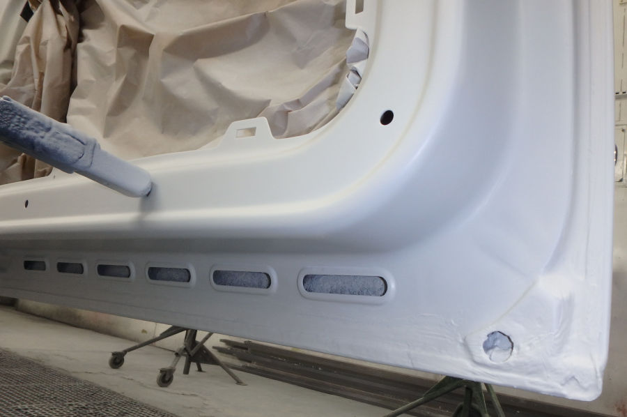 Danach wurde alles komplett gefüllert, geschliffen, das Fahrzeug mit einem Nass-in-Nass-Füller versehen und direkt anschließend lackiert.