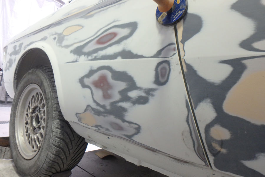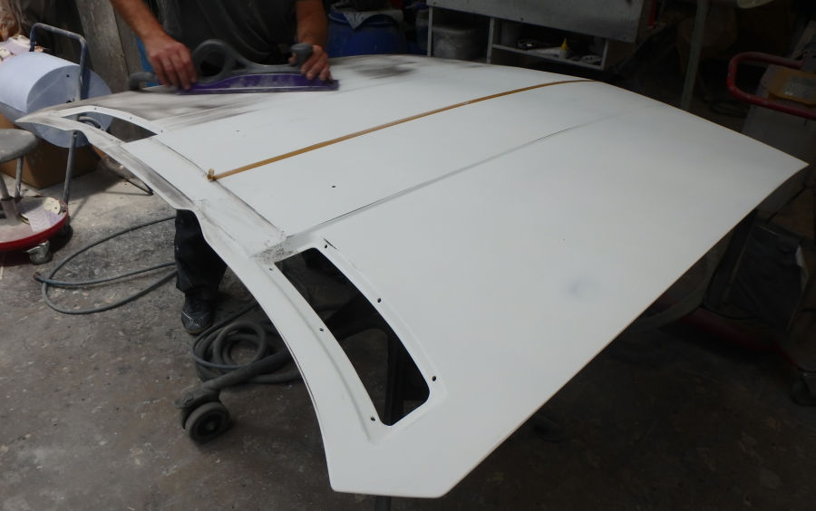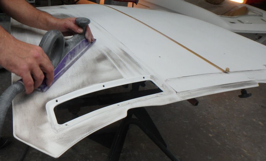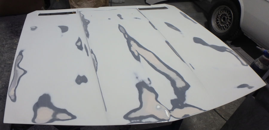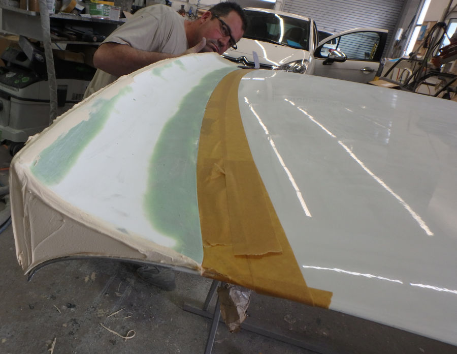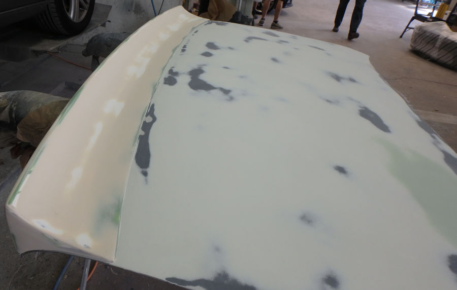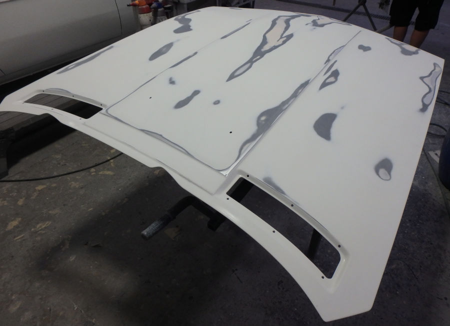 Die Motorhaube beim zweiten Schliff nach dem Füllern: