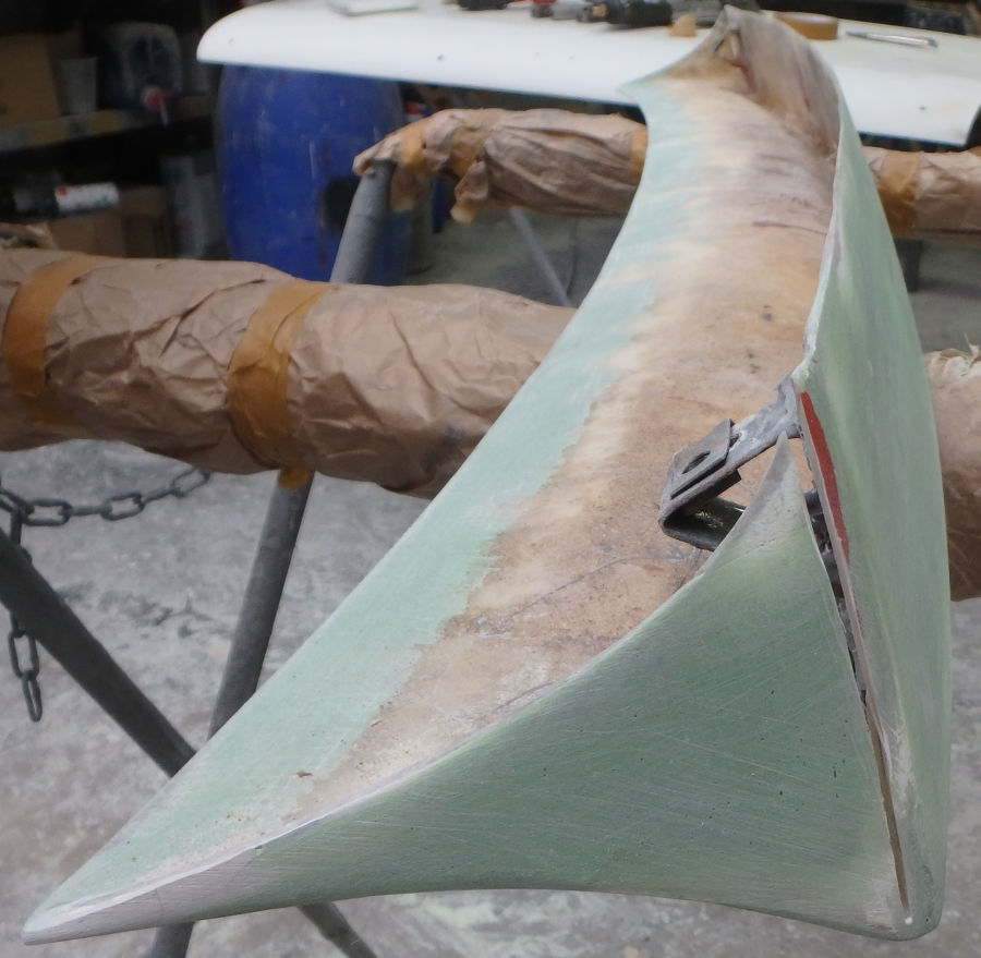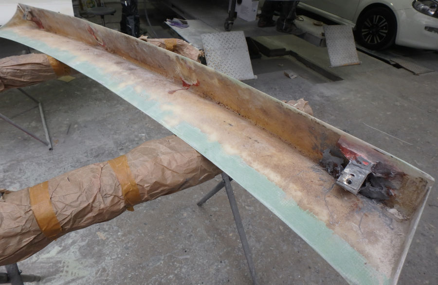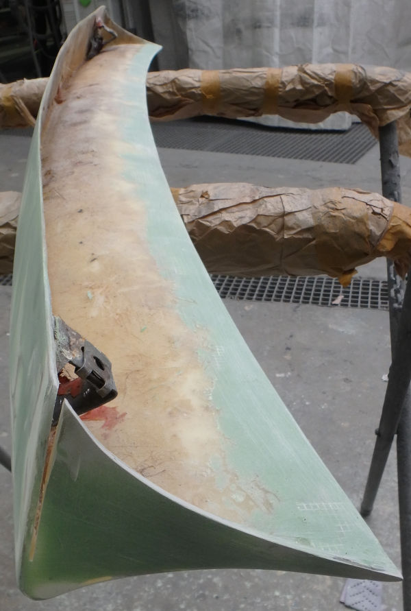 Das Bauteil für den Heckspoiler des Kofferdeckels ist aus GFK.
