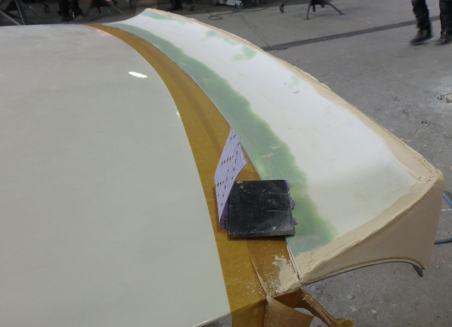 Das Ergebnis des ersten Schliffs. Wir konnten innerhalb des vorhandenen Materials schleifen und mussten nur sehr wenig spachteln:
