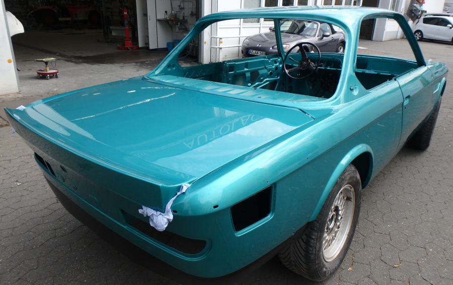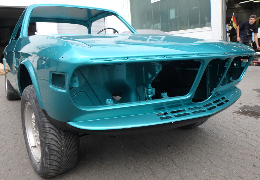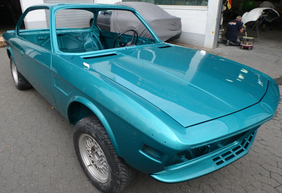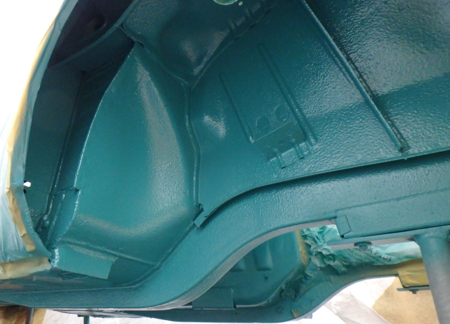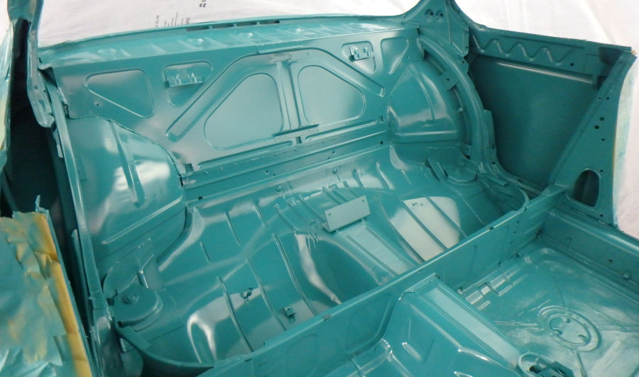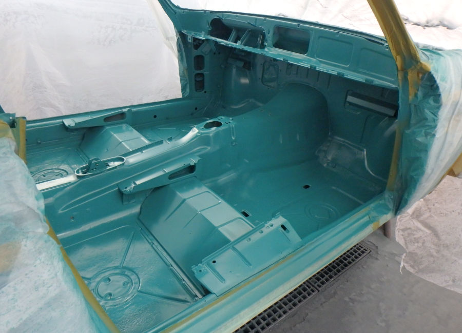 Innenraum, Unterboden und Motorraum werden in reinem türkis lackiert und weder geschliffen noch gespachtelt.