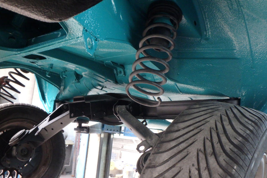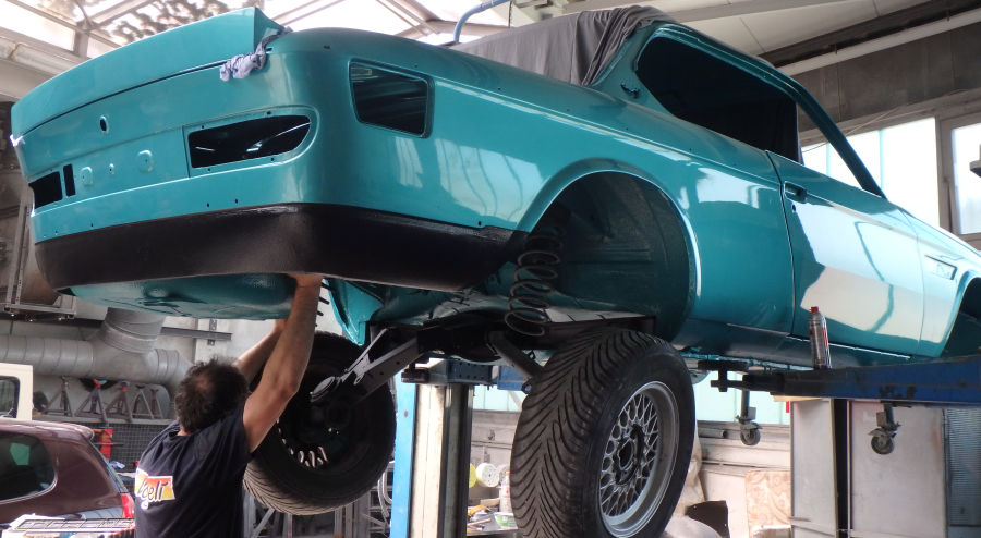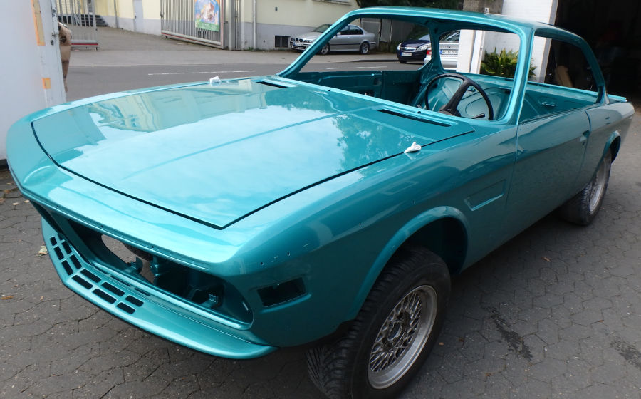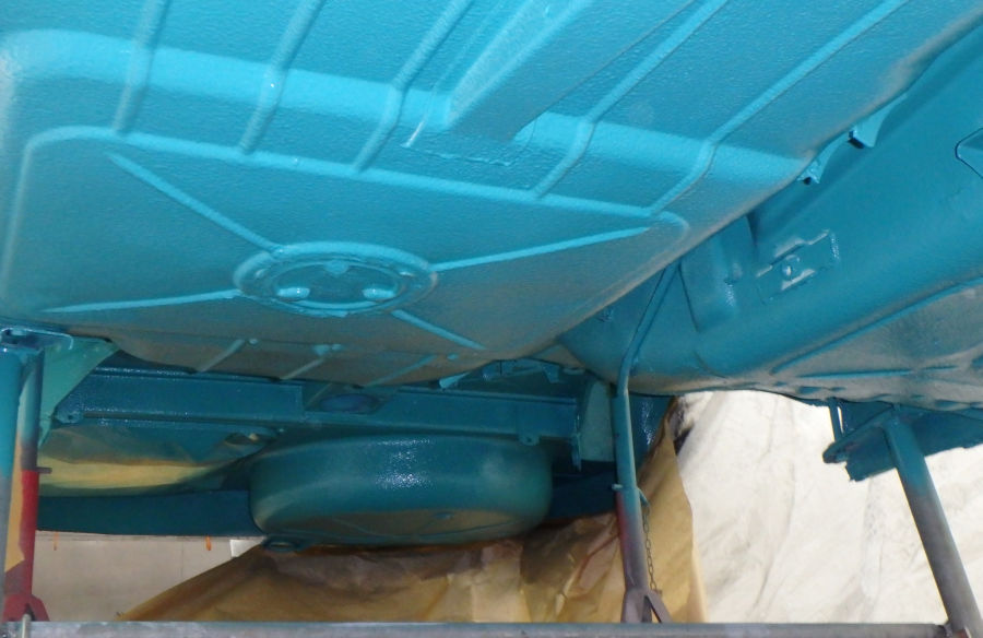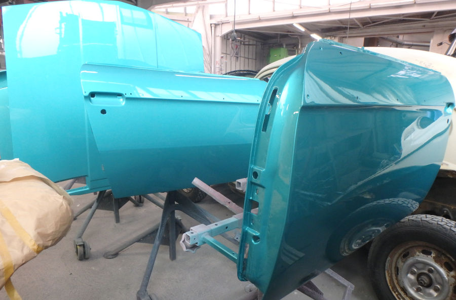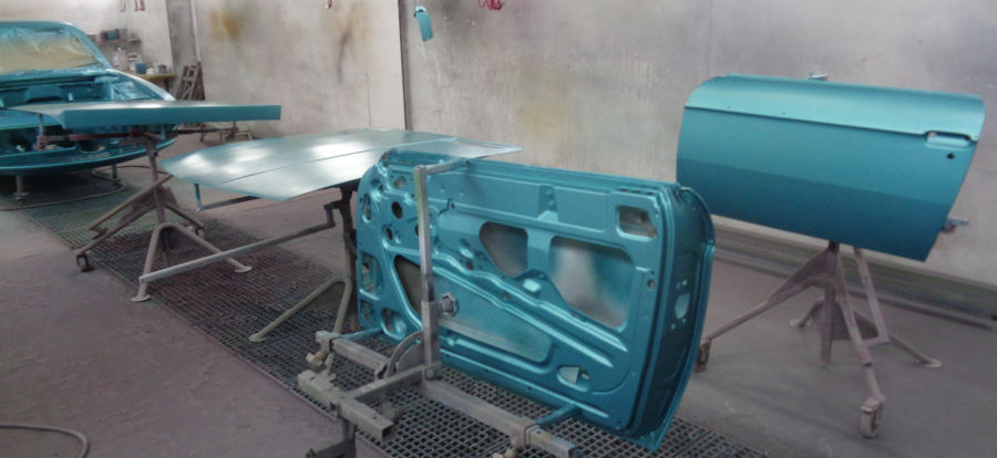 Innenraum, Unterboden und Motorraum werden in reinem türkis lackiert und weder geschliffen noch gespachtelt.