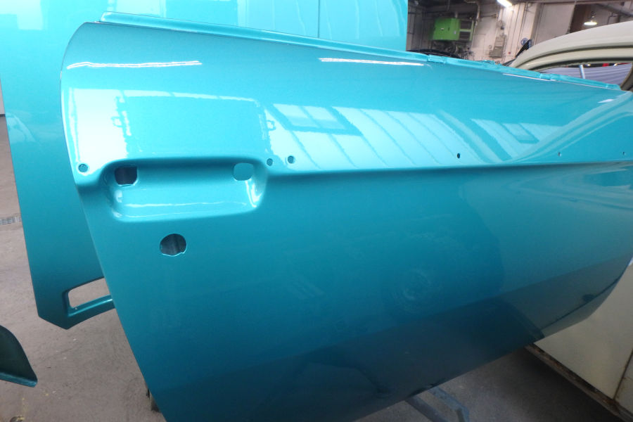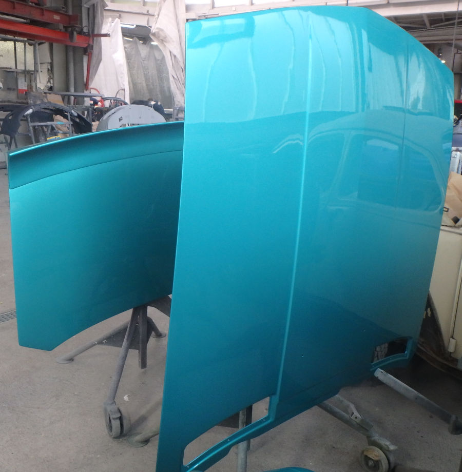 Da das Fahrzeug ohnehin komplett lackiert werden muss, eröffnete sich die Option, den Wagen wieder in der Originalfarbe zu lackieren.