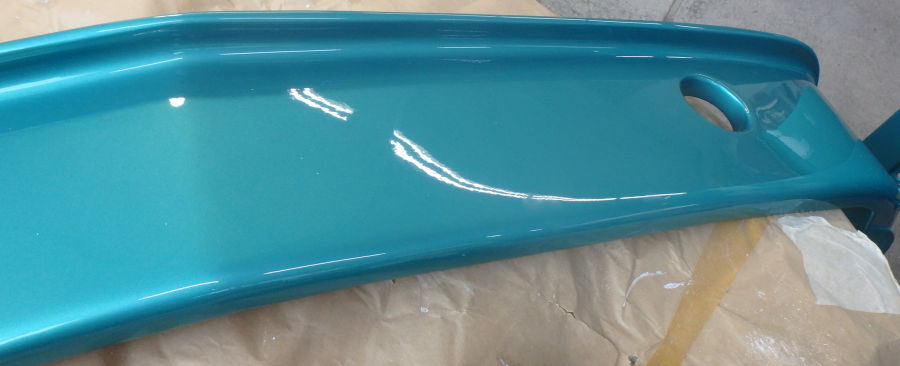 Unsere Aufgabe sind die Vorbereitungsarbeiten wie Schleifen, Spachteln und Füllern und die abschließende Lackierung in türkis metallic.
