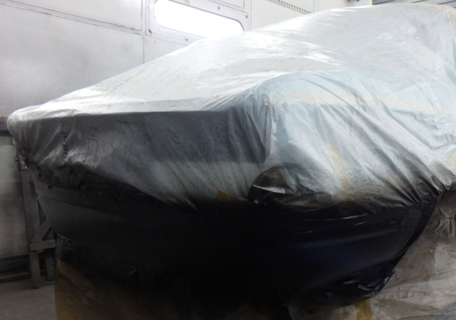 In der Großraumlackierkabine: