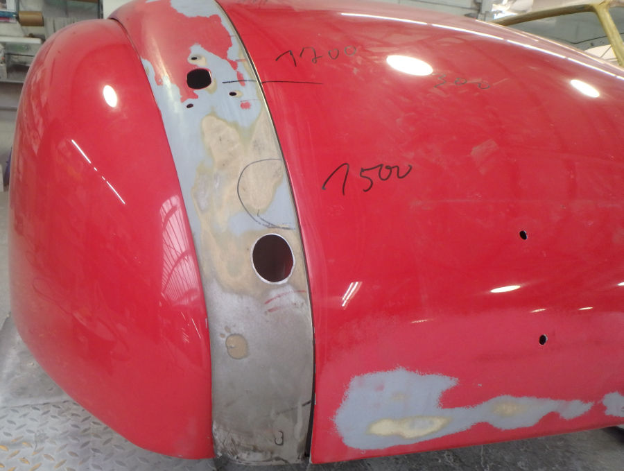 Die Basis ist eine gute, wir können im vorhandenen (Nicht-Original-) Lack schleifen, die Spachtelflächen sind an