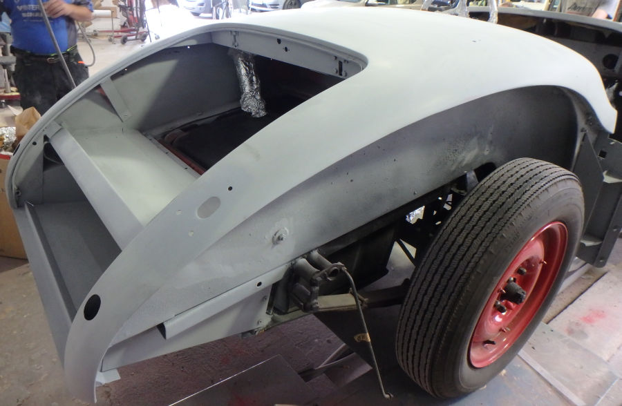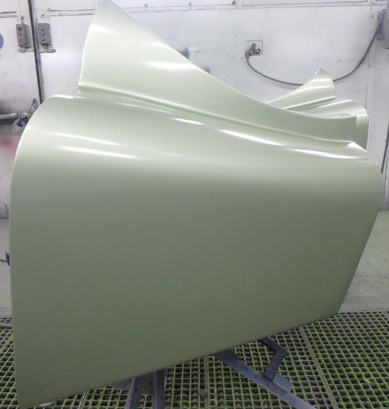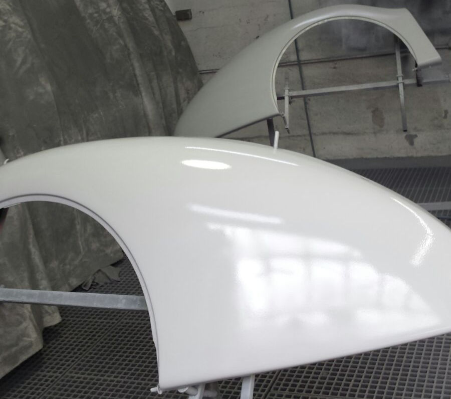 Lackierte Türen und die Karosse mit montierten Kotflügeln: