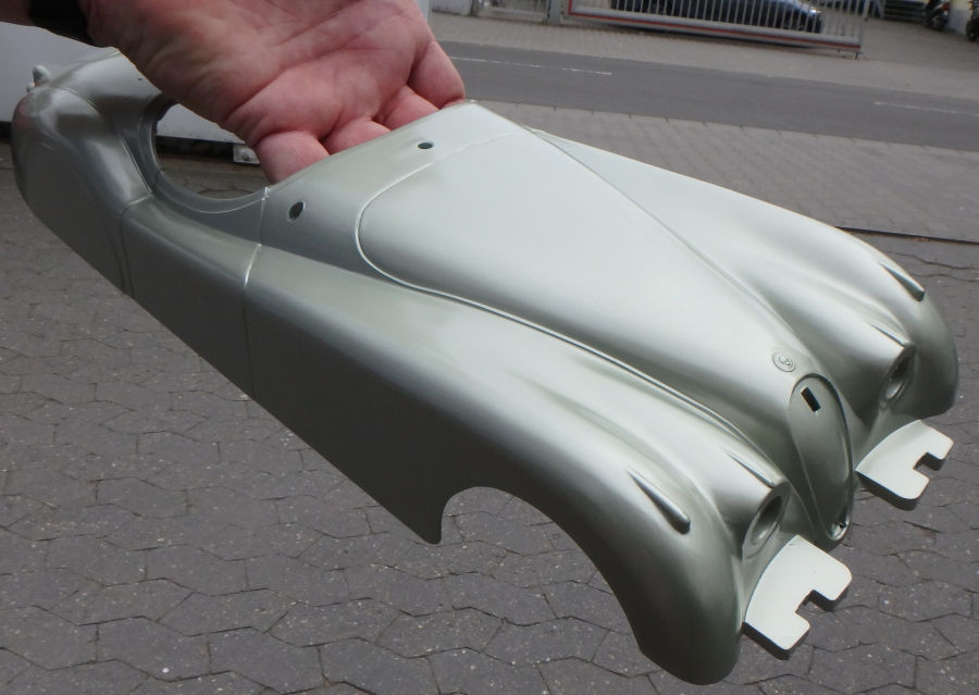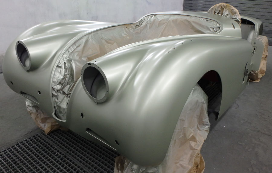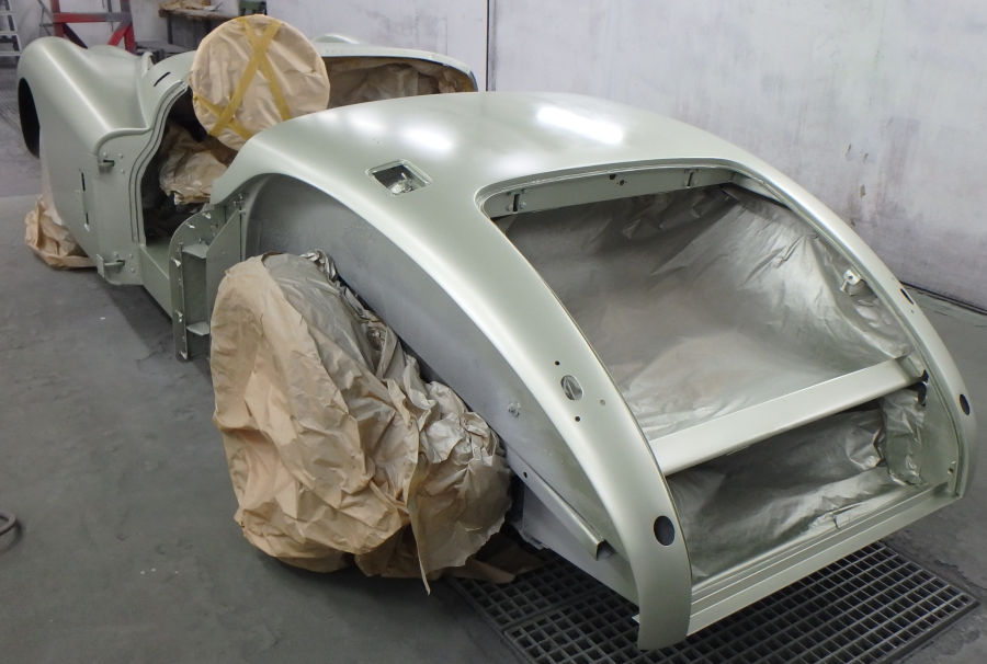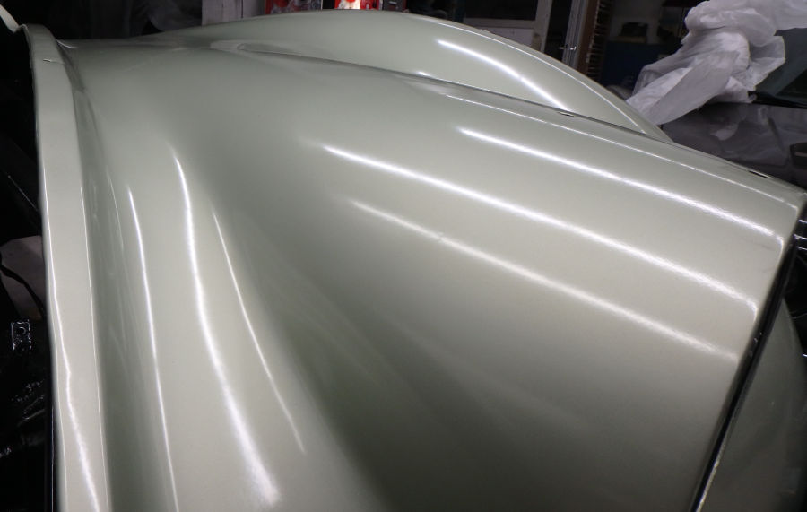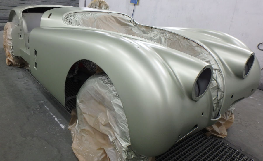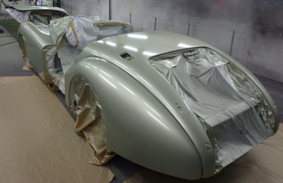So sieht die Karosserie nach dem Auftrag des Basislacks aus, es entsteht eine grandios edle Optik: