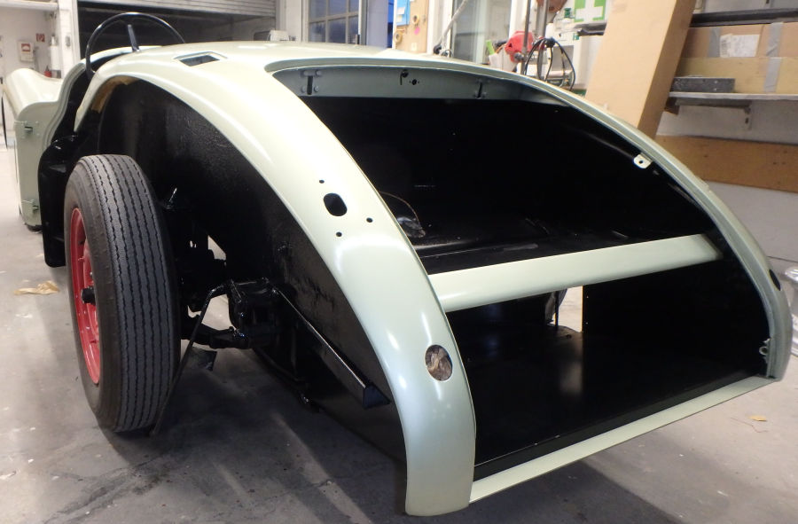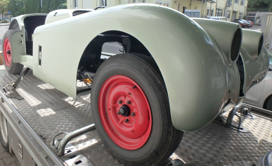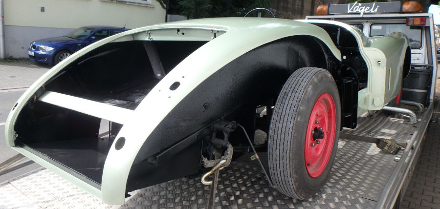 Die Karosserie auf dem Rückweg zum Zusammenbau: