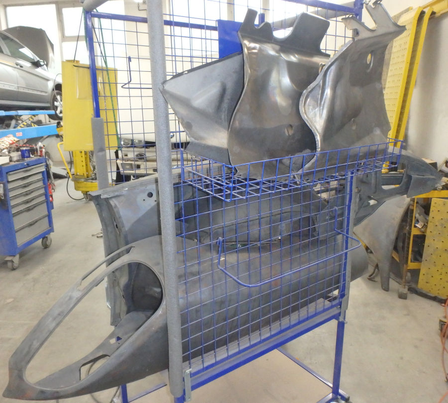 Ein letztes Bild von den Teilen, die jetzt zuerst zum chemischen Entlacken und Entrosten und dann direkt zur Tauchgrundierung gebracht werden.