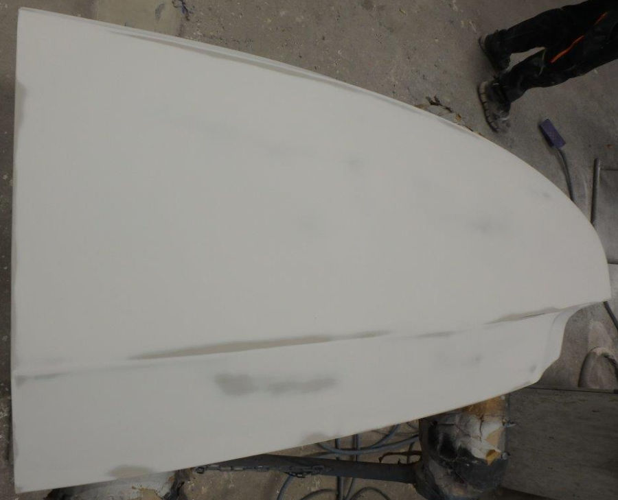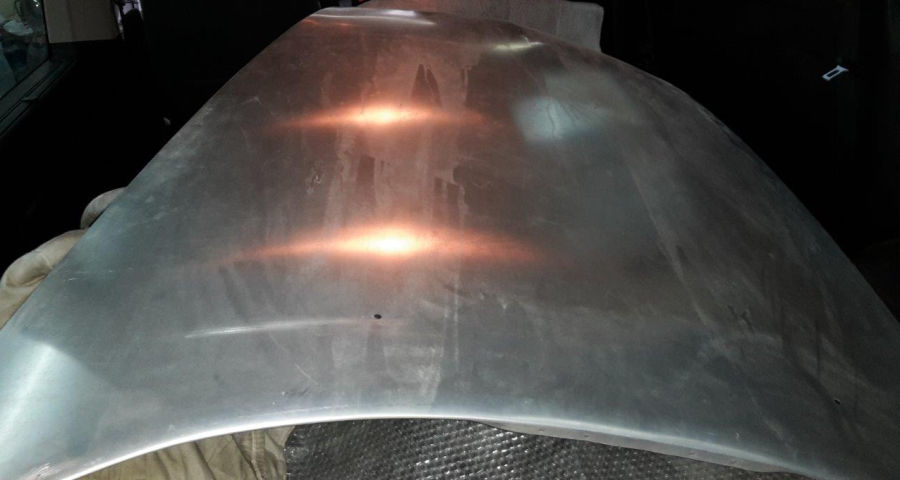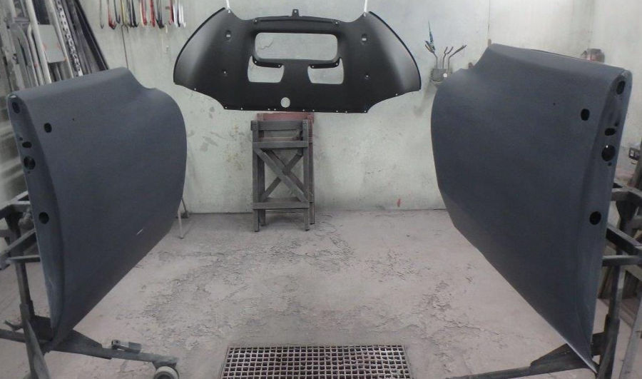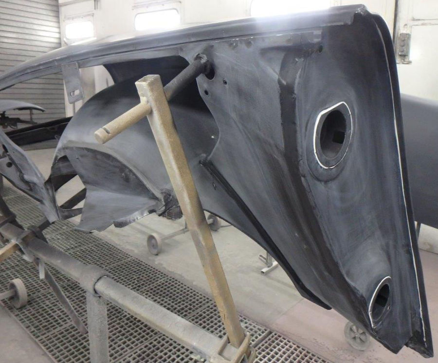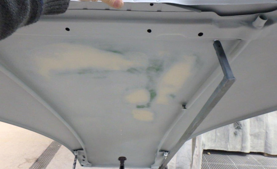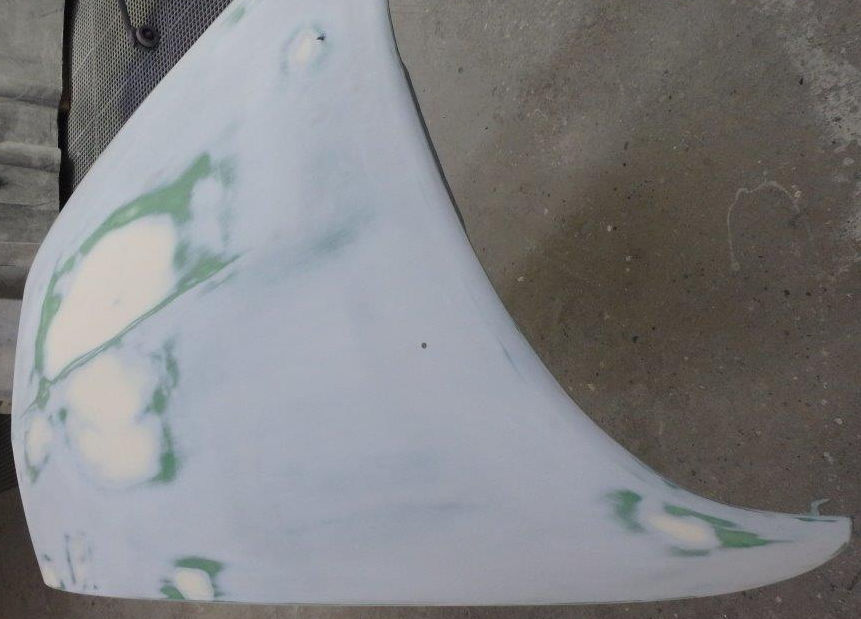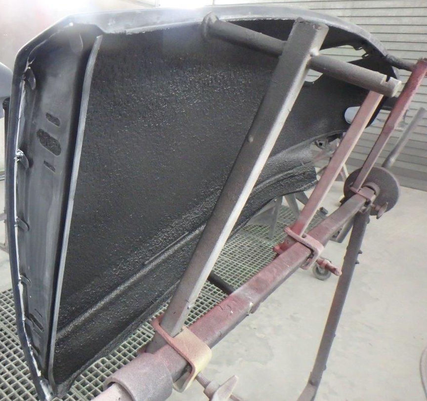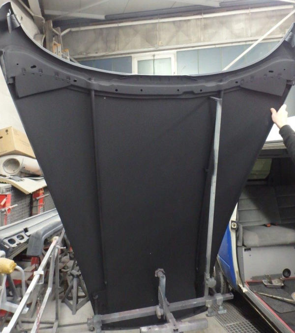 Die Haube nach KTL-Grundierung, EP-Füller-Auftrag, Spachteln und Schleifen...