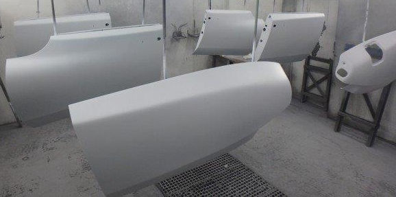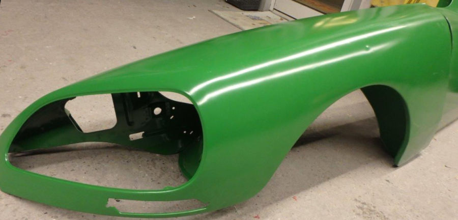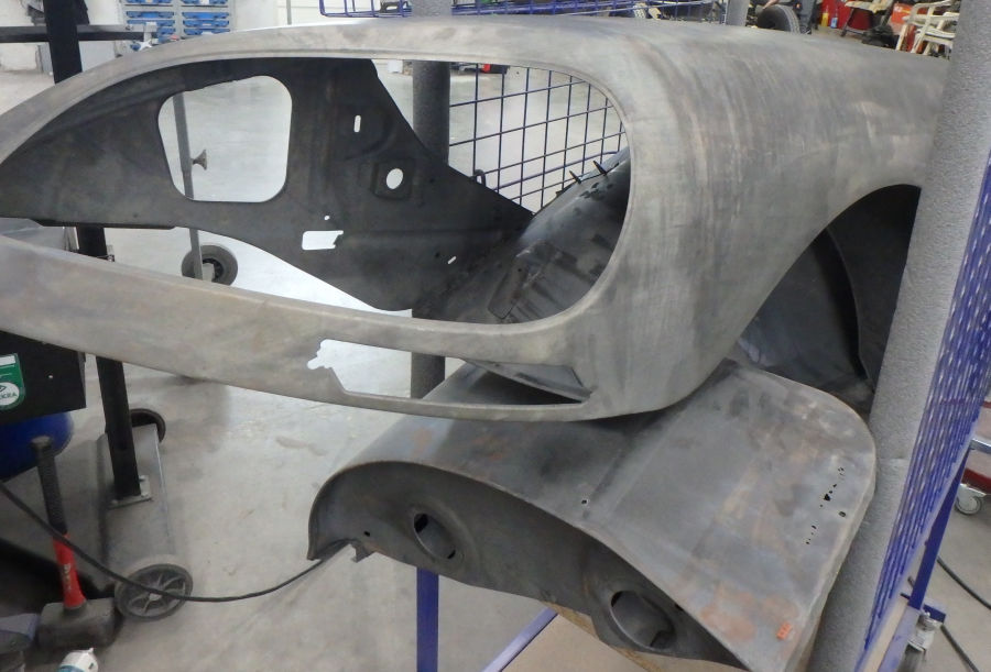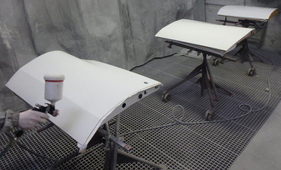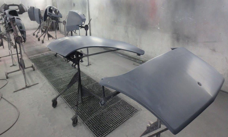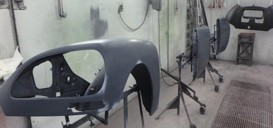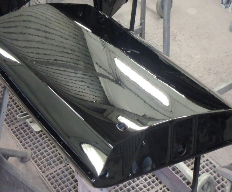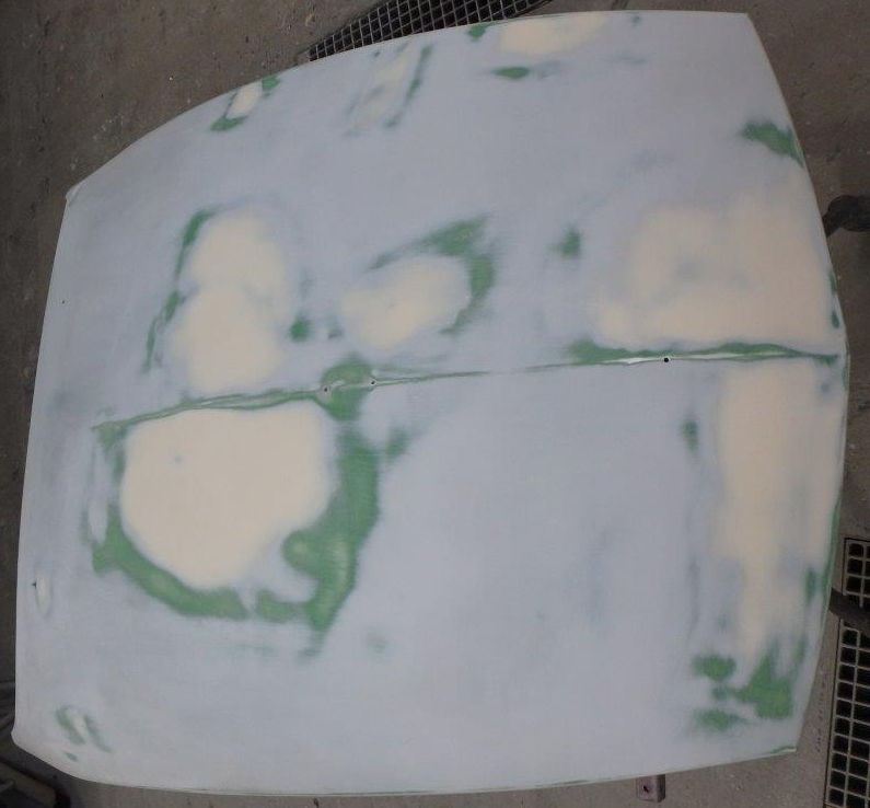 Die Haube nach KTL-Grundierung, EP-Füller-Auftrag, Spachteln und Schleifen...