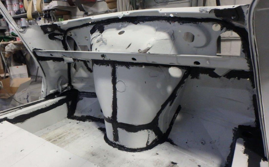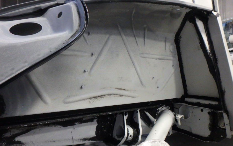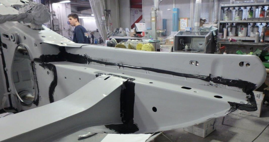 Die Karosse wird von uns über die werkseitig vorgesehenen Bereiche hinaus mit Steinschlagschutz versehen, da er neben