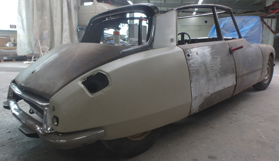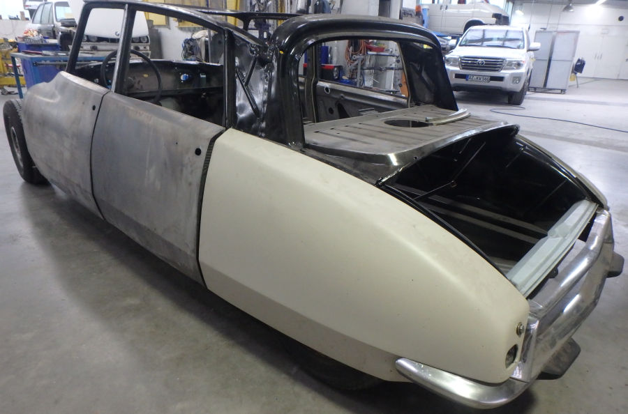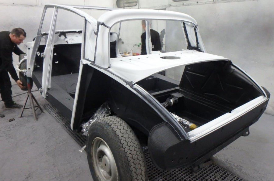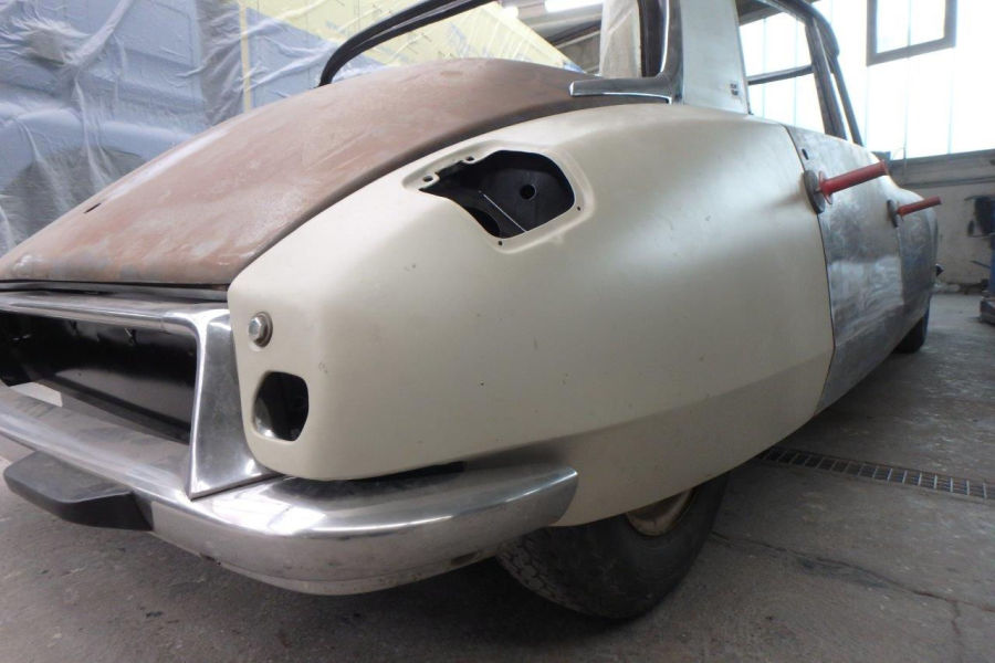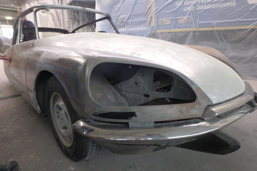 Auf dem vierten Bild ist die grundierte Karosse zu sehen.