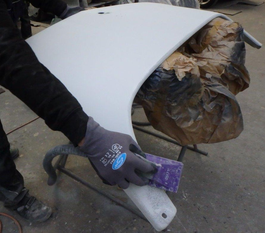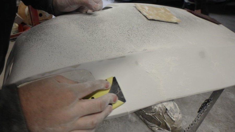 Danach wird Polyesterspritzspachtel aufgetragen: