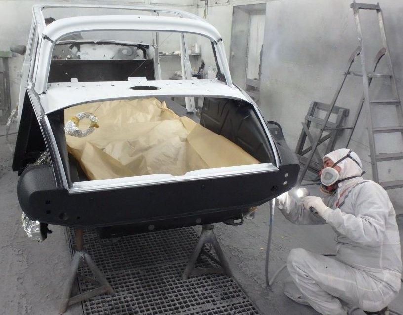 Auftrag von EP-Grundierung in unserer Großraumkabine: