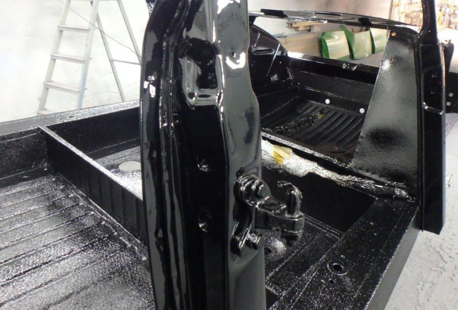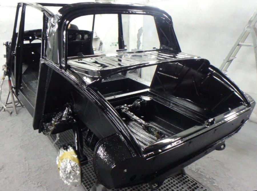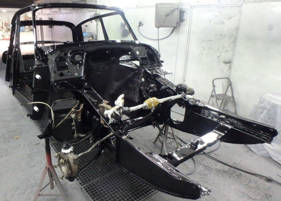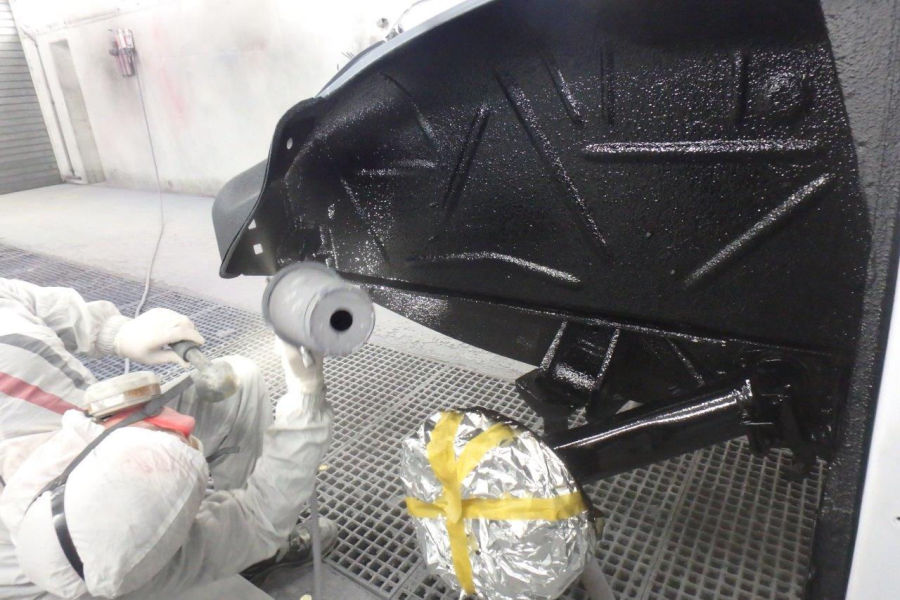 Jetzt wird komplett - auch über den Steinschlagschutz - schwarz glänzend lackiert: