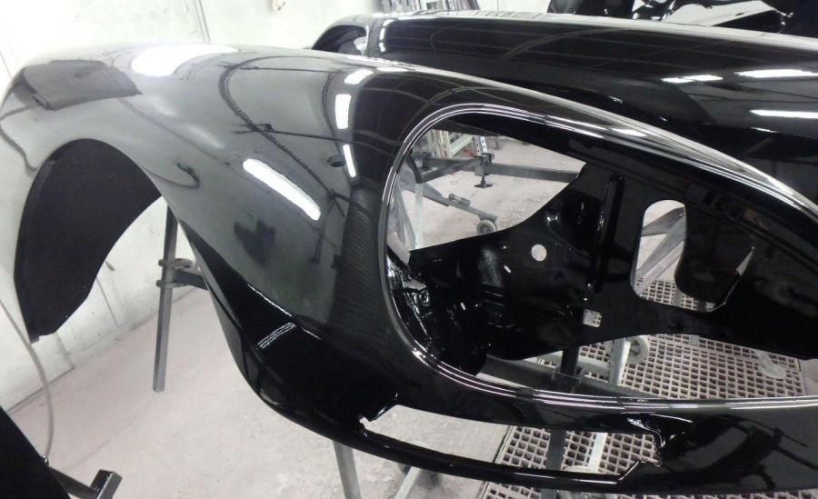 ... danach Füllerauftrag (schwarz eingefärbt, da auch die Lackierung in schwarz erfolgen wird):