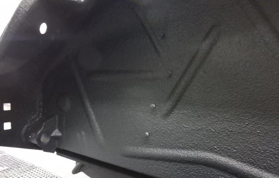 Vordere Kotflügel mit Spritzspachtel und Kontrastfarbe:
